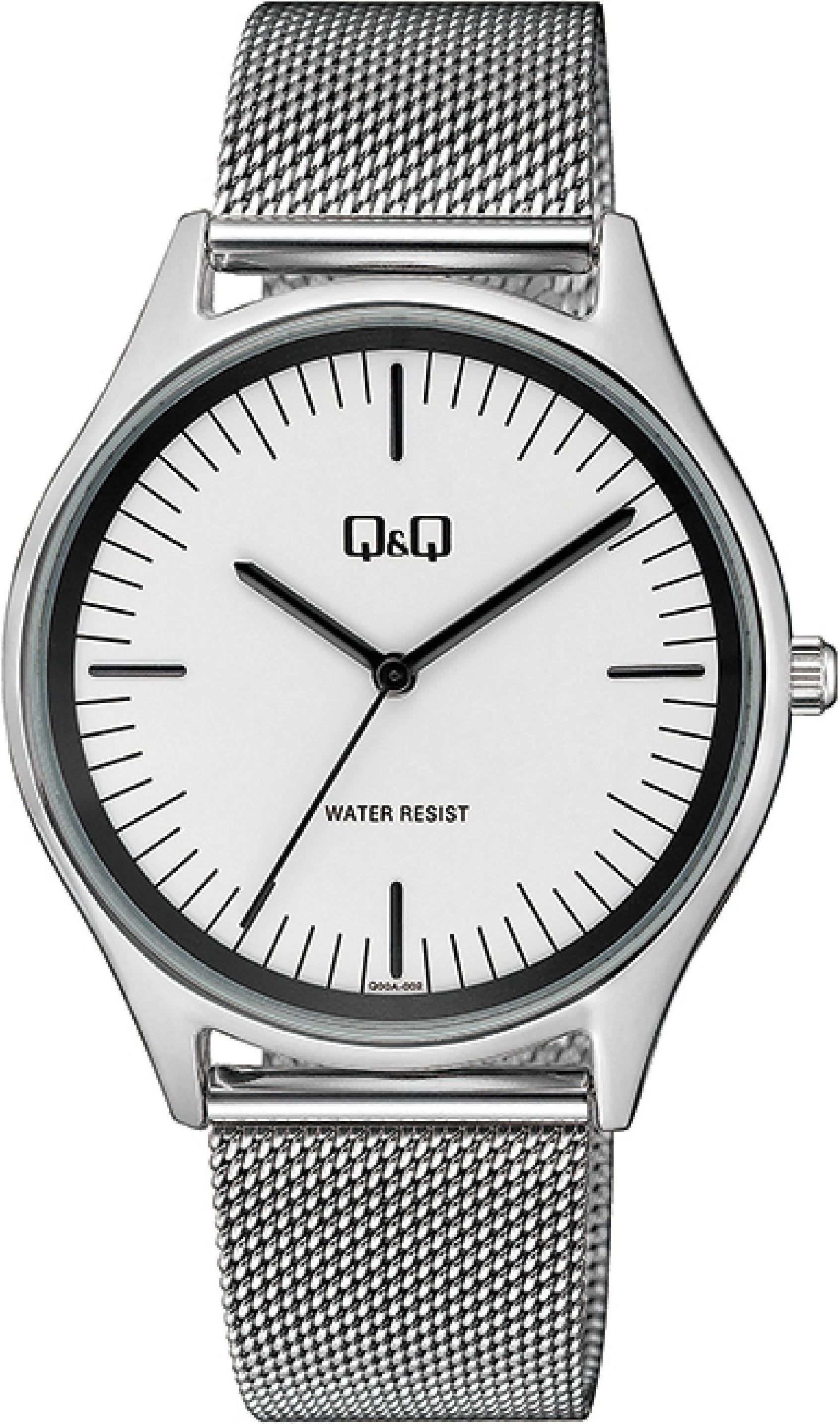 Мужские наручные часы Q&Q Casual Q00AJ002Y. Точный кварцевый механизм с аналоговой индикацией. Браслет из нержавеющей стали. Латунный браслет. Прочное, устойчивое к царапинам минеральное стекло защищает часы от повреждений. Часы являются водонепроницаемыми до 3 Бар. Цвет циферблата: Серебристый. Цвет корпуса: Белый. Толщина: 8 мм. Гарантия: 1 год.
