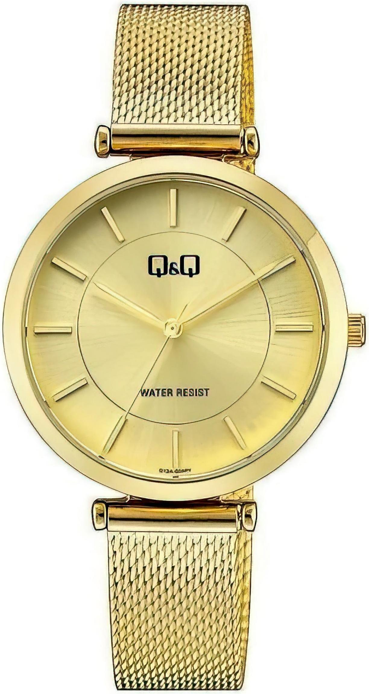 Женские наручные часы Q&Q Casual Q13AJ004Y. Точный кварцевый механизм с аналоговой индикацией. Браслет из нержавеющей стали. Латунный браслет. Прочное, устойчивое к царапинам минеральное стекло защищает часы от повреждений. Часы являются водонепроницаемыми до 3 Бар. Цвет циферблата: Желтое золото. Цвет корпуса: Золотистый. Толщина: 9 мм. Гарантия: 1 год.