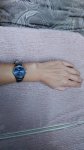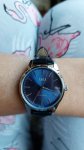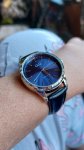 Это уже 3и часы от Q&Q, механизм надёжный,японский, за 2 года золотые с золотым миланским ремешком один раз переподводила,т.к . стали спешить на 1 минуту (за 2!!!года). С чёрным миланским ремешком и чёрным циферблатом ношу почти 2года. Эти в серебристом корпусе с кожаные ремешком купила под серебряные украшения. В связи с их размером и классическим стилем подойдут под любую одежду. Обхват моей руки 14,5см, на ремне ещё есть запас под более тонкую руку. Темно-синий циферблат меняет оттенок на более чёрный в зависимости от угла преломления света. Приехали в фирменной жёлтой коробочке, упакованной в пупырку. Внешний вид часов с годами ежедневного ношения не меняется. В золоте с миланскими браслетами не темнеют,не облезают, не царапается ни стекло,ни корпус. Уверена,что новые часики с синим циферблатом будут вести так же. Спасибо продавцу за оригинал и выбор часиков!