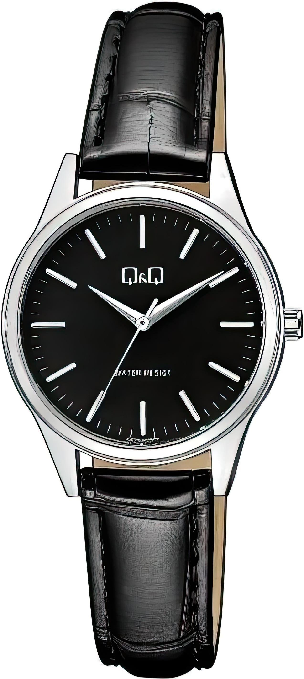 Женские наручные часы Q&Q Casual Q57AJ004Y. Точный кварцевый механизм с аналоговой индикацией. Ремешок изготовлен из кожи. Латунный браслет. Прочное, устойчивое к царапинам минеральное стекло защищает часы от повреждений. Часы являются водонепроницаемыми до 3 Бар. Цвет циферблата: Серебристый. Цвет корпуса: Черный. Толщина: 8 мм. Гарантия: 1 год.