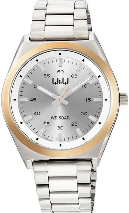 Мужские наручные часы Q&Q Casual Q80BJ003Y. Точный кварцевый механизм с аналоговой индикацией. В отличие от механических часов, не требуют завода и работают от батареи, показывая отклонение всего несколько секунд в месяц. Браслет из нержавеющей стали обладает высокой прочностью и износостойкостью, обеспечивая долговечность даже при активной эксплуатации. Материал устойчив к коррозии и сохраняет свой внешний вид надолго. Корпус изготовлен из высококачественной часовой латуни с высокими антикоррозийными свойствами. Прочное, устойчивое к царапинам минеральное стекло защищает часы от повреждений. Часы являются водонепроницаемыми до 5 Бар. Цвет корпуса: Серебристый. Цвет корпуса: Желтое золото. Цвет циферблата: Серебристый. Толщина: 10.3 мм. Гарантия: 1 год.