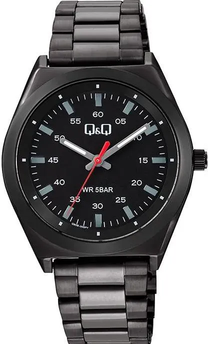 Мужские наручные часы Q&Q Casual Q80BJ005Y. Точный кварцевый механизм с аналоговой индикацией. В отличие от механических часов, не требуют завода и работают от батареи, показывая отклонение всего несколько секунд в месяц. Браслет из нержавеющей стали обладает высокой прочностью и износостойкостью, обеспечивая долговечность даже при активной эксплуатации. Материал устойчив к коррозии и сохраняет свой внешний вид надолго. Корпус изготовлен из высококачественной часовой латуни с высокими антикоррозийными свойствами. Прочное, устойчивое к царапинам минеральное стекло защищает часы от повреждений. Часы являются водонепроницаемыми до 5 Бар. Цвет корпуса: Черный. Цвет циферблата: Черный. Толщина: 10.3 мм. Гарантия: 1 год.
