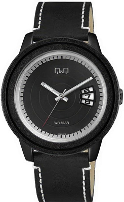 Мужские наручные часы Q&Q Casual QZ42J518Y. Точный кварцевый механизм с аналоговой индикацией. Корпус изготовлен из высококачественной часовой латуни с высокими антикоррозийными свойствами. На стрелки и отметки нанесен светонакопительный состав, благодаря этому считывать информацию с циферблата возможно и в темноте. На циферблате отображается текущее число месяца. Ремешок изготовлен из кожи. Прочное, устойчивое к царапинам минеральное стекло защищает часы от повреждений.Часы являются водонепроницаемыми до 5 Бар. Цвет корпуса: Черный. Цвет циферблата: Черный. Гарантия: 1 год.