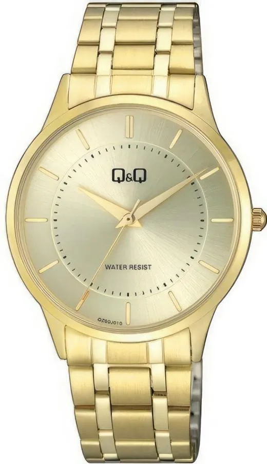 Мужские наручные часы Q&Q Casual QZ60J010Y. Точный кварцевый механизм с аналоговой индикацией. Браслет из нержавеющей стали. Латунный браслет. Прочное, устойчивое к царапинам минеральное стекло защищает часы от повреждений. Часы являются водонепроницаемыми до 3 Бар. Цвет циферблата: Желтое золото. Цвет корпуса: Золотистый. Толщина: 10 мм. Гарантия: 1 год.
