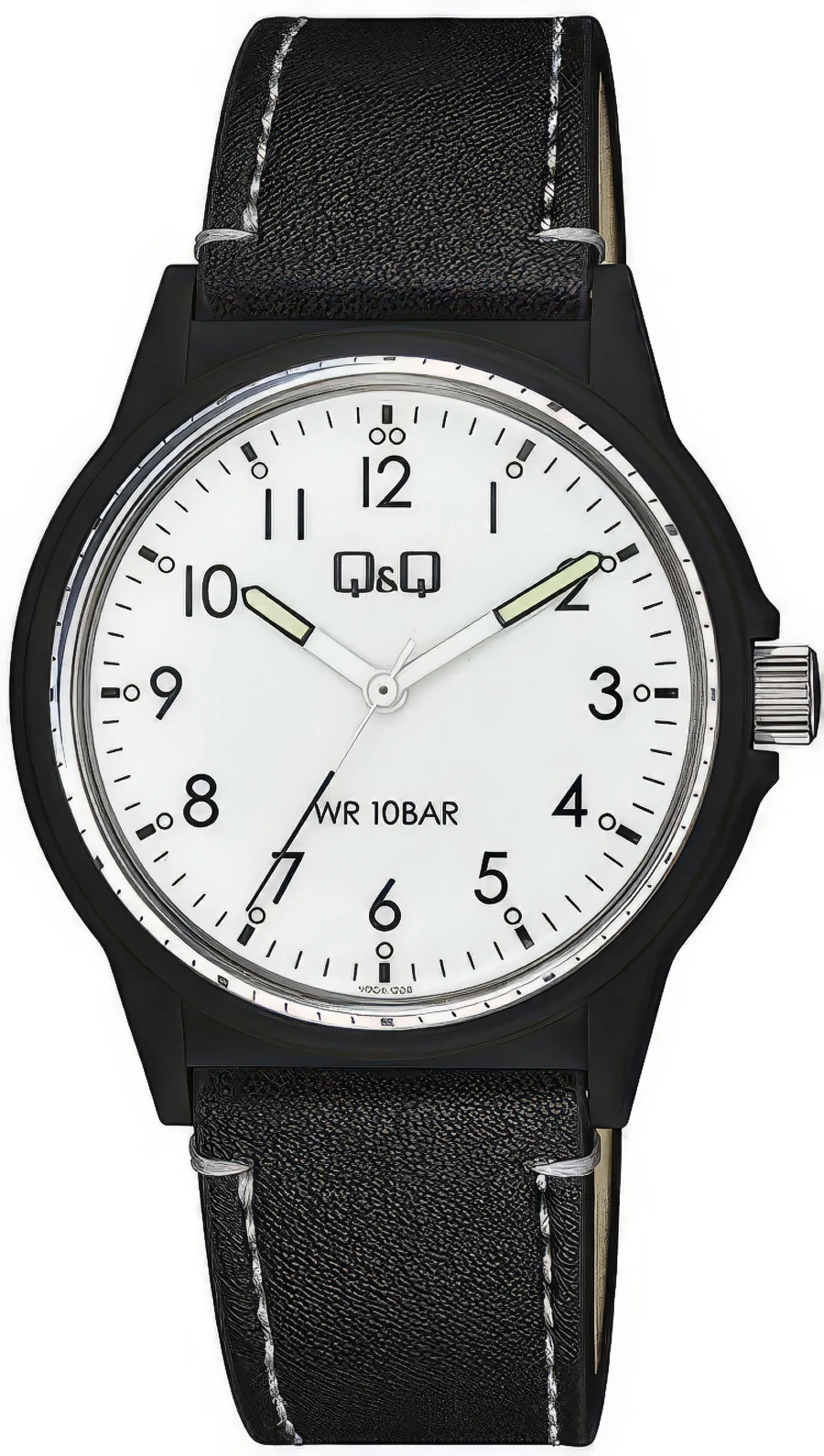 Женские наручные часы Q&Q Casual V00AJ008Y. Точный кварцевый механизм с аналоговой индикацией. Полимерный корпус надежно защищает часы от механических повреждений. На стрелки и отметки нанесен светонакопительный состав, благодаря этому считывать информацию с циферблата возможно и в темноте. Полимерный ремешок. Натуральный полимерный материал является идеальным для изготовления ремешка благодаря своей чрезвычайной прочности и гибкости. Органическое стекло. Часы являются водонепроницаемыми до 10 Бар. Цвет корпуса: Черный. Цвет циферблата: Белый. Ширина (с заводной головкой): 39мм. Толщина: 11мм. Гарантия: 1 год.