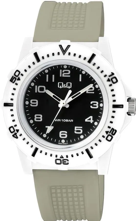Мужские наручные часы Q&Q Casual V32AJ005Y. Точный кварцевый механизм с аналоговой индикацией. Полимерный ремешок. Натуральный полимерный материал является идеальным для изготовления ремешка благодаря своей чрезвычайной прочности и гибкости. Полимерный ремешок. Натуральный полимерный материал является идеальным для изготовления ремешка благодаря своей чрезвычайной прочности и гибкости. Органическое стекло. Часы являются водонепроницаемыми до 10 Бар. Цвет циферблата: Белый. Цвет корпуса: Черный. На стрелки и отметки нанесен светонакопительный состав, благодаря этому считывать информацию с циферблата возможно и в темноте. Толщина: 14 мм. Гарантия: 1 год.