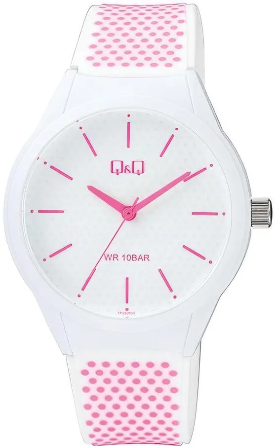 Мужские наручные часы Q&Q Casual VR28J032Y. Точный кварцевый механизм с аналоговой индикацией. Полимерный ремешок. Натуральный полимерный материал является идеальным для изготовления ремешка благодаря своей чрезвычайной прочности и гибкости. Полимерный ремешок. Натуральный полимерный материал является идеальным для изготовления ремешка благодаря своей чрезвычайной прочности и гибкости. Органическое стекло. Часы являются водонепроницаемыми до 3 Бар. Цвет циферблата: Белый. Цвет корпуса: Белый. Цвет корпуса: Розовый. Толщина: 11 мм. Гарантия: 1 год.