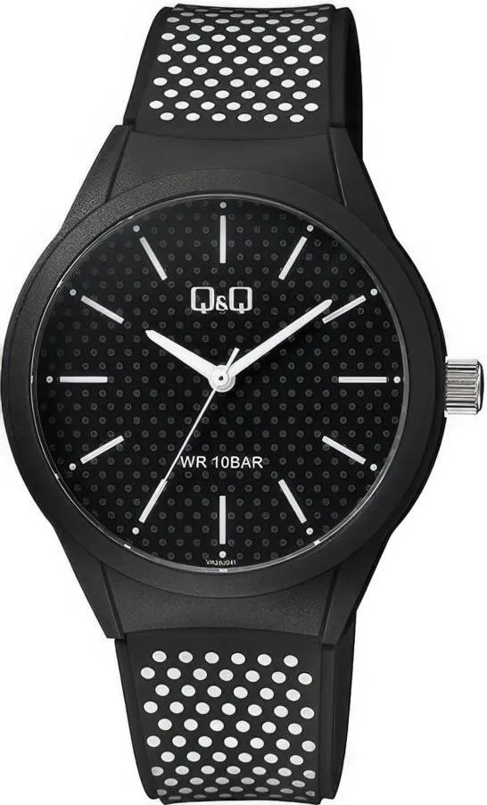 Мужские наручные часы Q&Q Casual VR28J041Y. Точный кварцевый механизм с аналоговой индикацией. Полимерный корпус надежно защищает часы от механических повреждений. Полимерный ремешок. Натуральный полимерный материал является идеальным для изготовления ремешка благодаря своей чрезвычайной прочности и гибкости. Органическое стекло. Часы являются водонепроницаемыми до 10 Бар. Цвет корпуса: Черный. Цвет циферблата: Черный. Ширина (с заводной головкой): 40мм. Толщина: 11мм. Гарантия: 1 год.