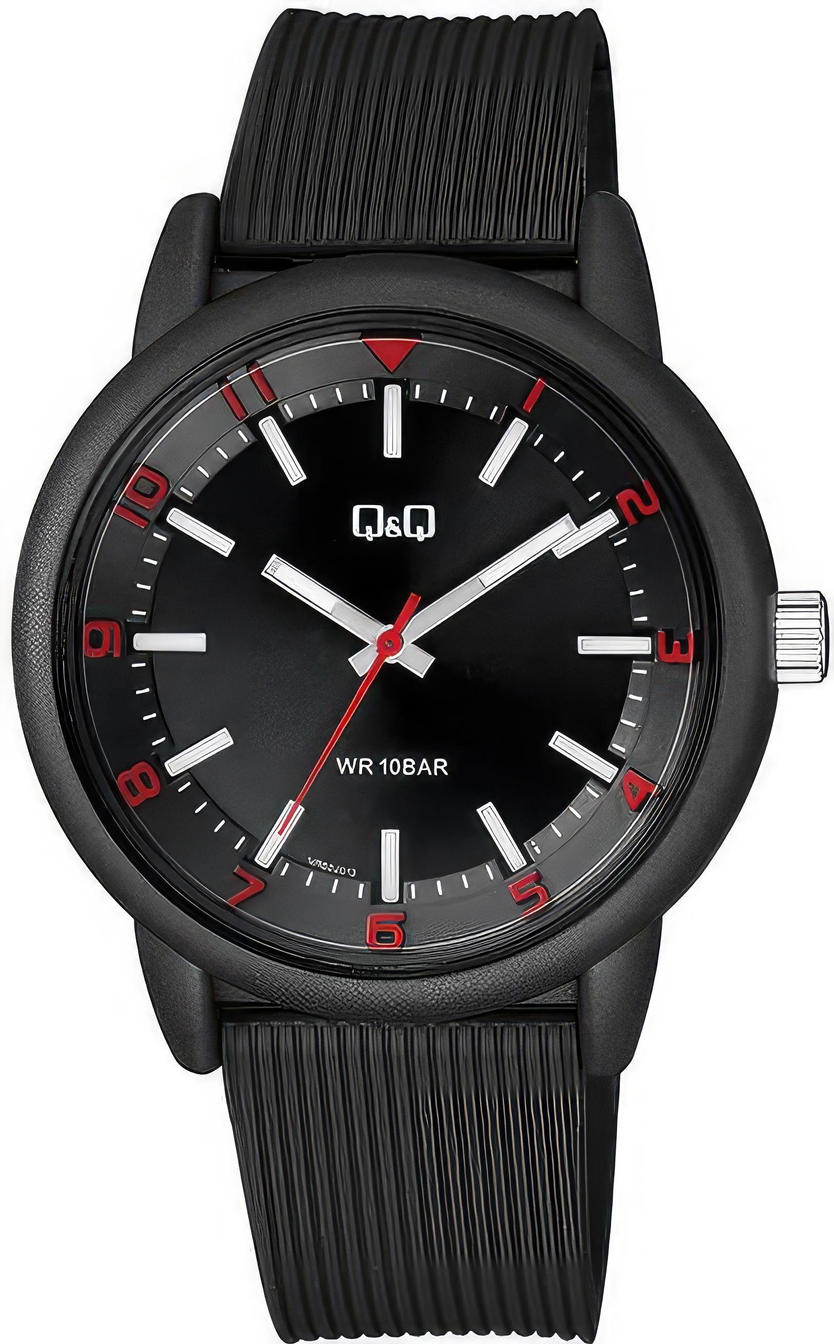 Мужские наручные часы Q&Q Casual VR52J013Y. Точный кварцевый механизм с аналоговой индикацией. Полимерный корпус надежно защищает часы от механических повреждений. На стрелки и отметки нанесен светонакопительный состав, благодаря этому считывать информацию с циферблата возможно и в темноте. Полимерный ремешок. Натуральный полимерный материал является идеальным для изготовления ремешка благодаря своей чрезвычайной прочности и гибкости. Органическое стекло. Часы являются водонепроницаемыми до 10 Бар. Цвет корпуса: Черный. Цвет циферблата: Черный. Ширина (с заводной головкой): 42мм. Толщина: 11мм. Гарантия: 1 год.