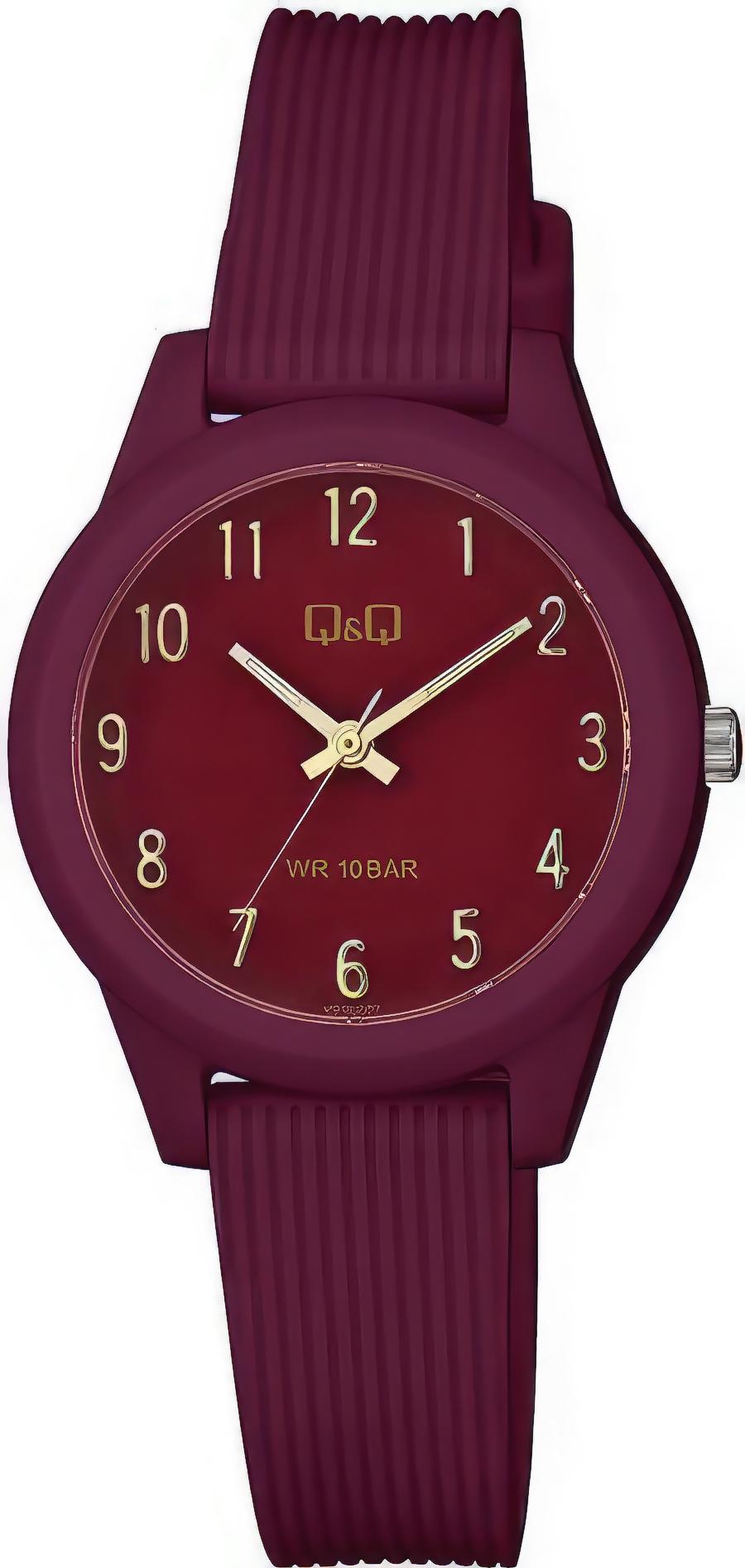Женские наручные часы Q&Q Casual VS13J007Y. Точный кварцевый механизм с аналоговой индикацией. Полимерный корпус надежно защищает часы от механических повреждений. На стрелки и отметки нанесен светонакопительный состав, благодаря этому считывать информацию с циферблата возможно и в темноте. Полимерный ремешок. Натуральный полимерный материал является идеальным для изготовления ремешка благодаря своей чрезвычайной прочности и гибкости. Органическое стекло. Часы являются водонепроницаемыми до 10 Бар. Цвет корпуса: Фиолетовый. Цвет циферблата: Фиолетовый. Ширина (с заводной головкой): 32мм. Толщина: 10мм. Гарантия: 1 год.