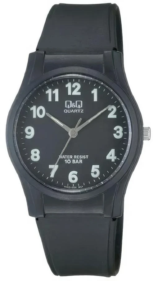 Мужские кварцевые наручные часы небольшого диаметра в легком пластиковом корпусе с высокой водозащитой.