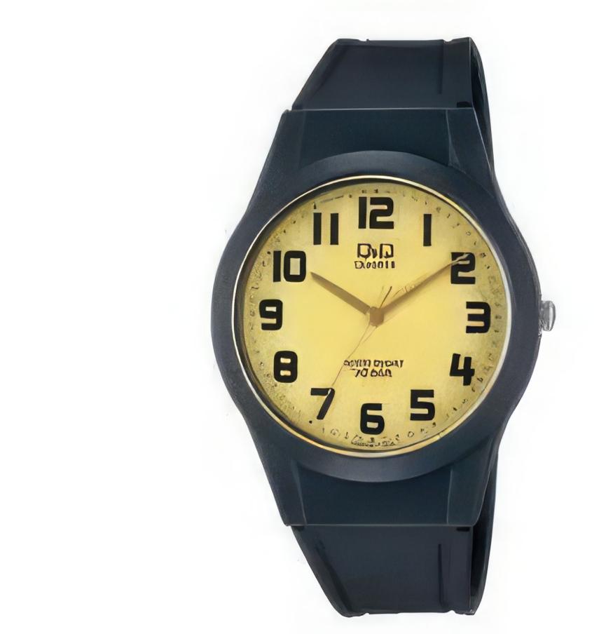 <b>Мужские наручные часы Q&Q VQ50J001Y.</b> Точный кварцевый механизм с аналоговой индикацией. Полимерный корпус надежно защищает часы от механических повреждений. Полимерный ремешок. Натуральный полимерный материал является идеальным для изготовления ремешка благодаря своей чрезвычайной прочности и гибкости. Прочное, устойчивое к царапинам минеральное стекло защищает часы от повреждений.Часы являются водонепроницаемыми до 10 Бар. Цвет корпуса: Черный. Цвет циферблата: Золотистый. Гарантия: 1 год.