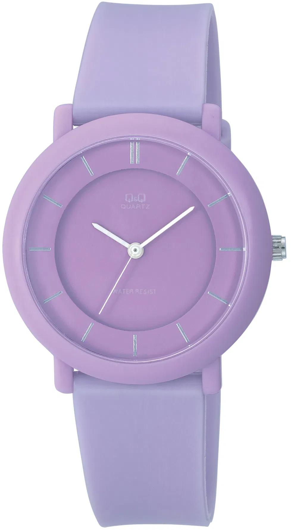 <b>Детские наручные часы Q&Q VQ94J007Y.</b> Точный кварцевый механизм с аналоговой индикацией. Полимерный корпус надежно защищает часы от механических повреждений. Полимерный ремешок. Натуральный полимерный материал является идеальным для изготовления ремешка благодаря своей чрезвычайной прочности и гибкости. Прочное, устойчивое к царапинам минеральное стекло защищает часы от повреждений.Часы являются водонепроницаемыми до 5 Бар. Цвет корпуса: Фиолетовый. Гарантия: 1 год.