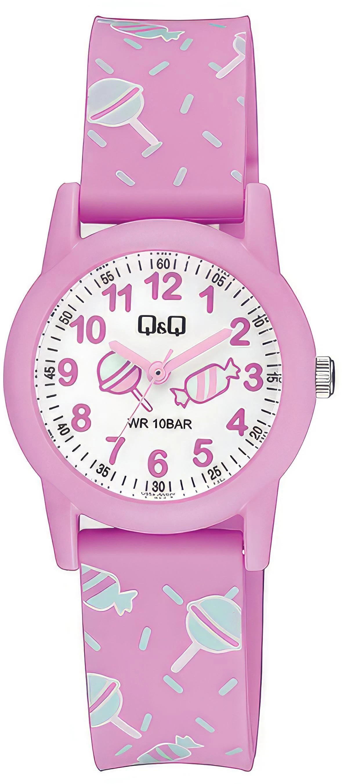 Детские наручные часы Q&Q Kids V22AJ003Y. Точный кварцевый механизм с аналоговой индикацией. В отличие от механических часов, не требуют завода и работают от батареи, показывая отклонение всего несколько секунд в месяц. Полимерный ремешок. Натуральный полимерный материал является идеальным для изготовления ремешка благодаря своей чрезвычайной прочности и гибкости. Полимерный корпус надежно защищает часы от механических повреждений. Органическое стекло. Часы являются водонепроницаемыми до 10 Бар. Цвет корпуса: Розовый. Цвет циферблата: Белый. Толщина: 8 мм. Гарантия: 1 год.