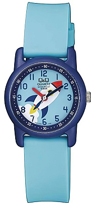 Детские наручные часы Q&Q Kids V22AJ006Y. Точный кварцевый механизм с аналоговой индикацией. В отличие от механических часов, не требуют завода и работают от батареи, показывая отклонение всего несколько секунд в месяц. Полимерный ремешок. Натуральный полимерный материал является идеальным для изготовления ремешка благодаря своей чрезвычайной прочности и гибкости. Полимерный корпус надежно защищает часы от механических повреждений. Органическое стекло. Часы являются водонепроницаемыми до 10 Бар. Цвет корпуса: Голубой. Цвет циферблата: Белый. Толщина: 8 мм. Гарантия: 1 год.