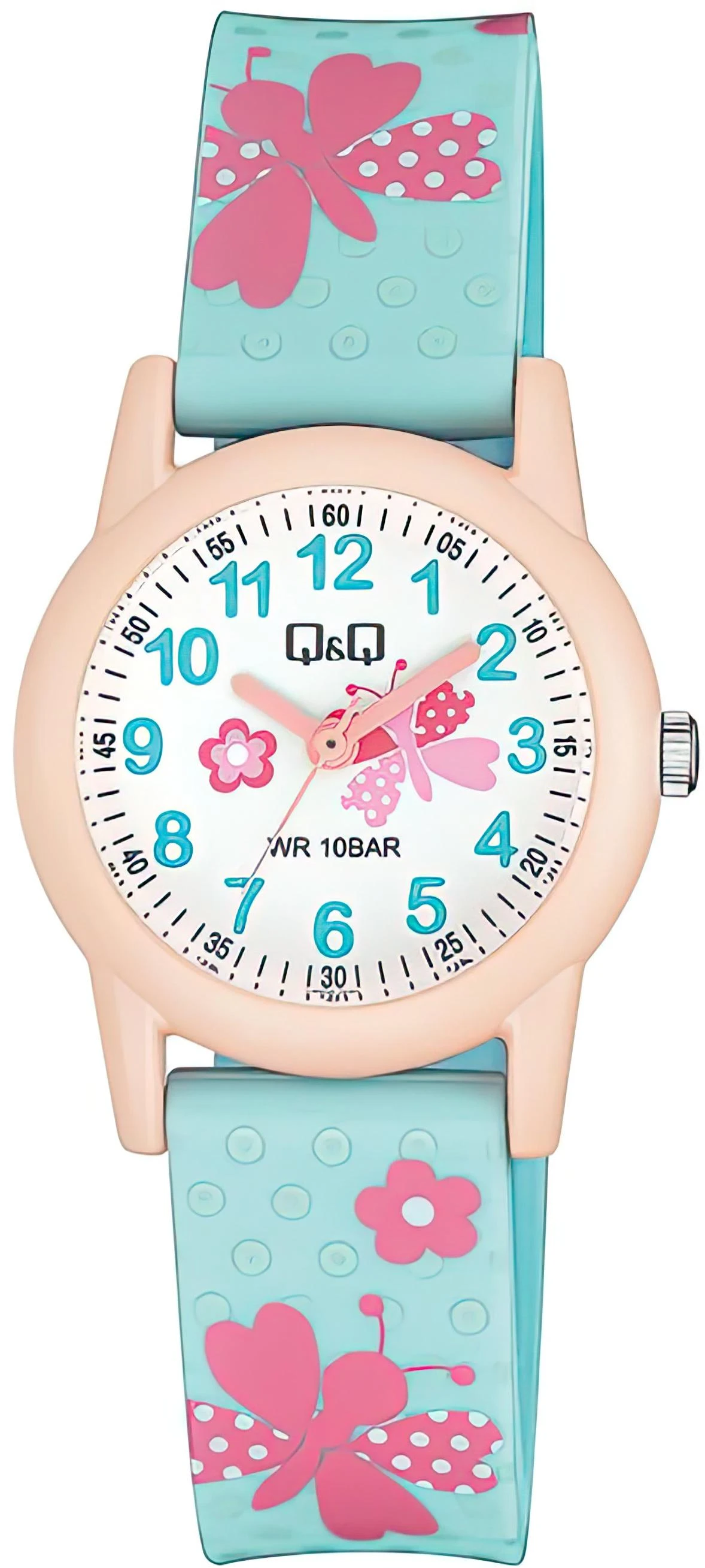 Детские наручные часы Q&Q Kids VR99J015Y. Точный кварцевый механизм с аналоговой индикацией. Полимерный корпус надежно защищает часы от механических повреждений. Полимерный ремешок. Натуральный полимерный материал является идеальным для изготовления ремешка благодаря своей чрезвычайной прочности и гибкости. Органическое стекло. Часы являются водонепроницаемыми до 3 Бар. Цвет корпуса: Бежевый. Цвет циферблата: Белый. Ширина (с заводной головкой): 30мм. Толщина: 10мм. Гарантия: 1 год.