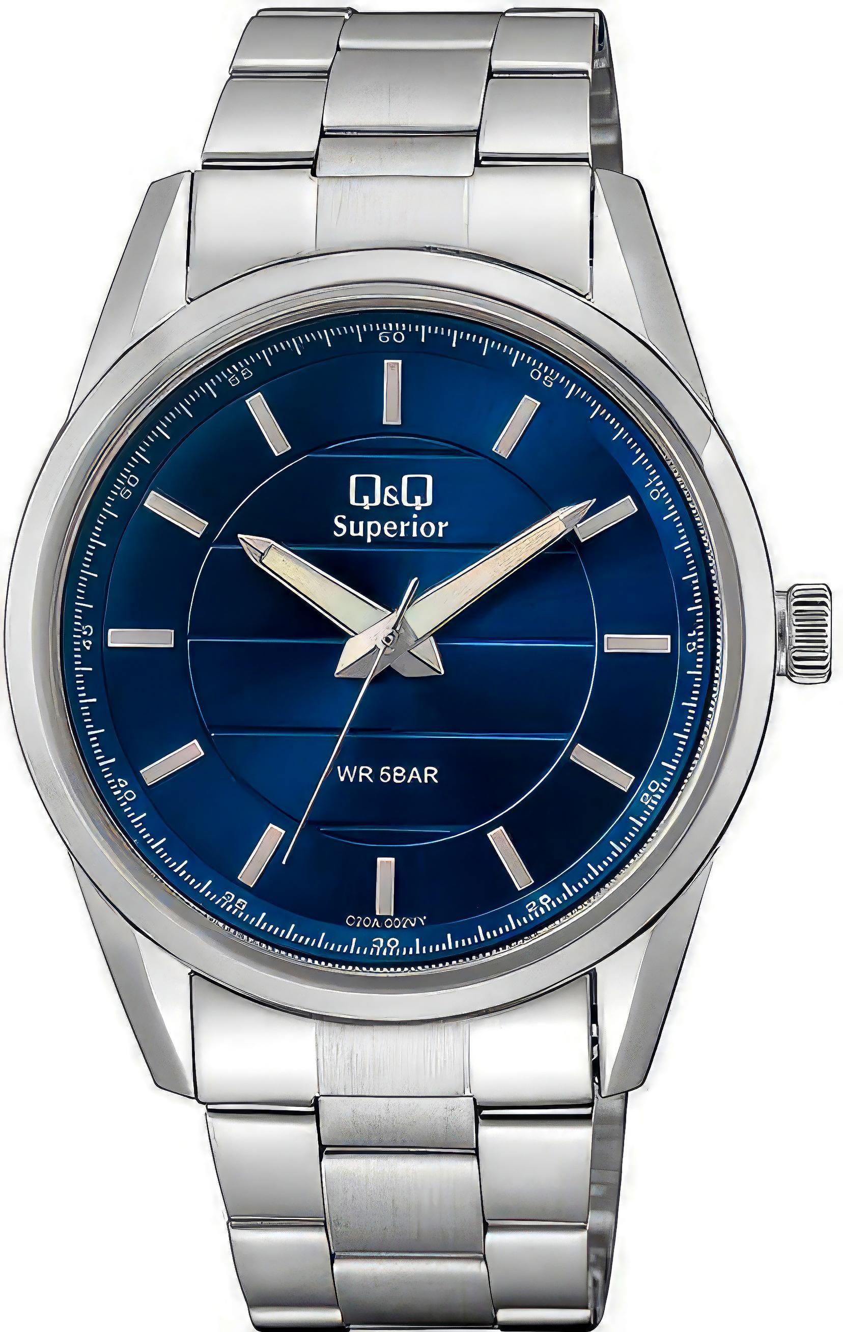 Мужские наручные часы Q&Q Superior C20AJ002Y. Точный кварцевый механизм с аналоговой индикацией. Браслет из нержавеющей стали. Браслет из нержавеющей стали. Прочное, устойчивое к царапинам минеральное стекло защищает часы от повреждений. Часы являются водонепроницаемыми до 5 Бар. Цвет циферблата: Серебристый. Цвет корпуса: Синий. На стрелки и отметки нанесен светонакопительный состав, благодаря этому считывать информацию с циферблата возможно и в темноте. Толщина: 10 мм. Гарантия: 1 год.