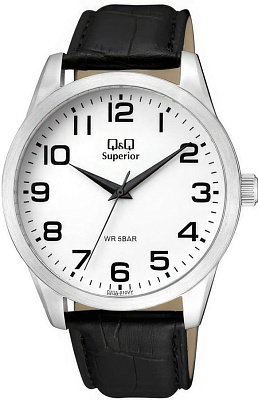Мужские наручные часы Q&Q Superior C23AJ010Y. Точный кварцевый механизм с аналоговой индикацией. Ремешок изготовлен из кожи. Браслет из нержавеющей стали. Прочное, устойчивое к царапинам минеральное стекло защищает часы от повреждений. Часы являются водонепроницаемыми до 5 Бар. Цвет циферблата: Серебристый. Цвет корпуса: Белый. Толщина: 9 мм. Гарантия: 1 год.