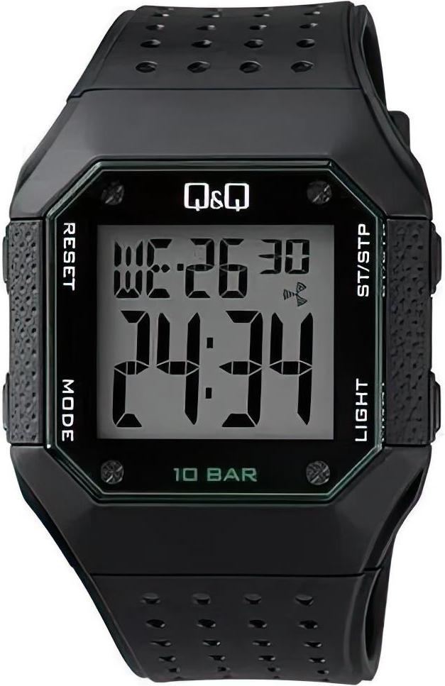 Электронные часы с точность хода не хуже -10 +15 сек./в месяц. • Ежедневный будильник со звуковым сигналом. • Секундомер. • Автоматический календарь. • Электрическая подсветка. • Легкое и прочное хезалитовое стекло. • Корпус из полимерных материалов. • Водозащита до 10 АТМ. • Черный ремешок из полимерного материала. • Простая ремешковая застежка. • Диаметр 40 мм, толщина 12 мм. Вес 48 мм.