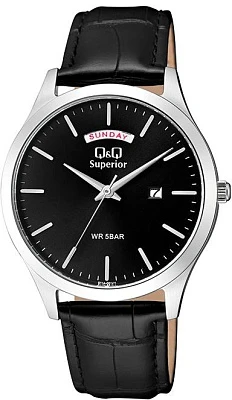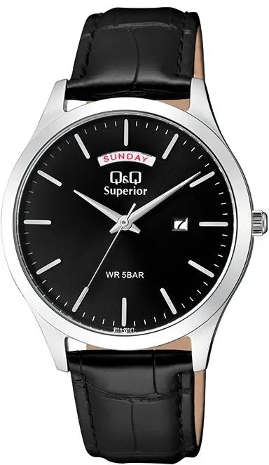 . Точный кварцевый механизм с аналоговой индикацией. Ремешок изготовлен из кожи. Латунный браслет. Прочное, устойчивое к царапинам минеральное стекло защищает часы от повреждений. На циферблате отображается текущее число месяца и день недели. Часы являются водонепроницаемыми до 5 Бар. Цвет циферблата: Серебристый. Цвет корпуса: Черный. Толщина: 10 мм. Гарантия: 1 год.
