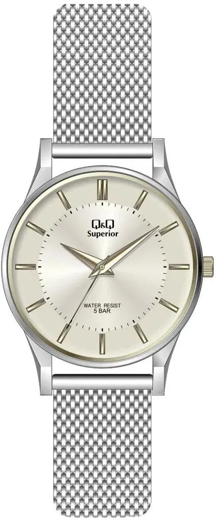 Мужские наручные часы Q&Q Superior S308J200Y. Точный кварцевый механизм с аналоговой индикацией. Корпус изготовлен из высококачественной часовой латуни с высокими антикоррозийными свойствами. Браслет из нержавеющей стали. Прочное, устойчивое к царапинам минеральное стекло защищает часы от повреждений.Часы являются водонепроницаемыми до 5 Бар. Цвет корпуса: Желтое золото. Цвет циферблата: Серебристый. Ширина (с заводной головкой): 40мм. Толщина: 10мм. Гарантия: 1 год.