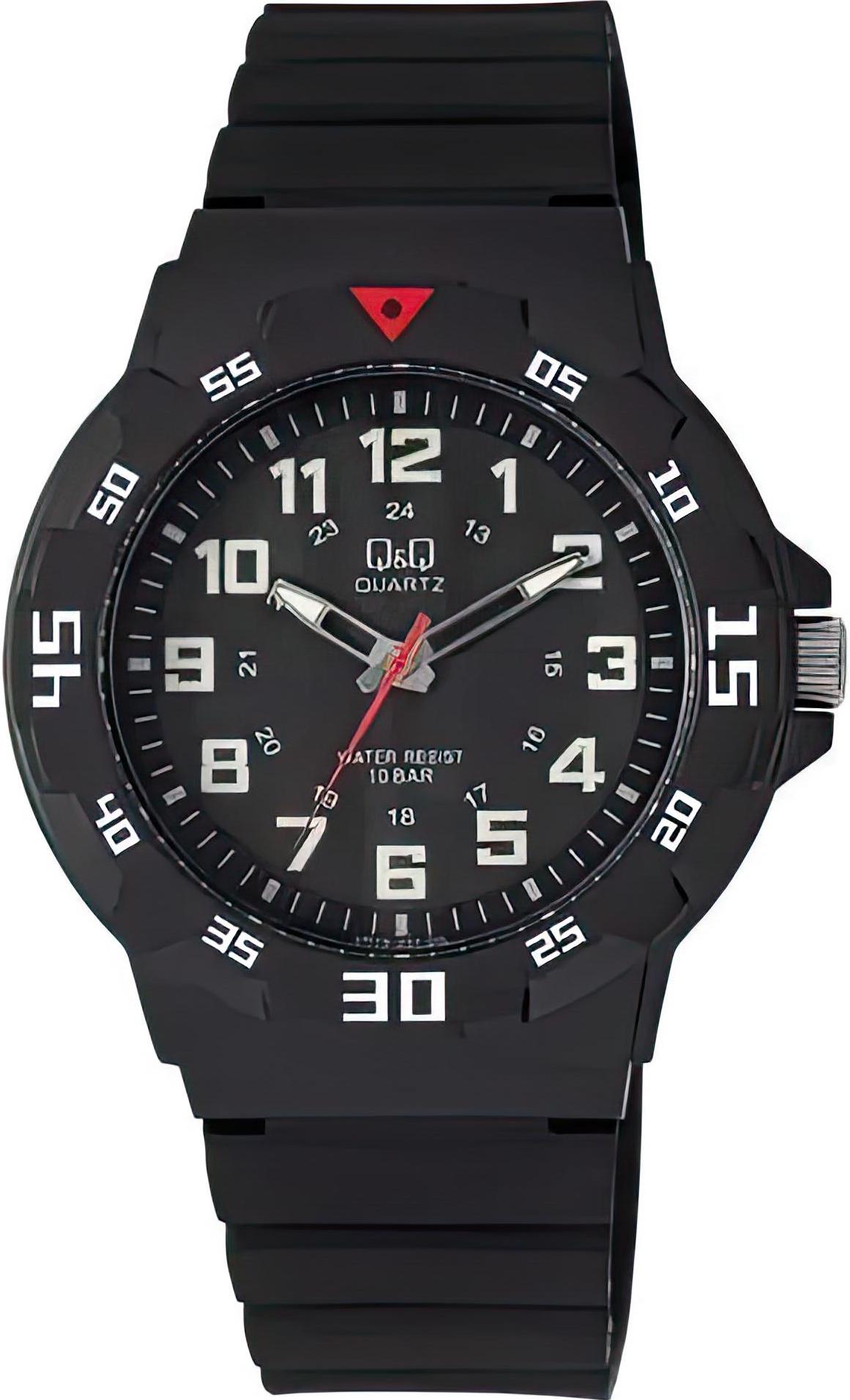 Мужские наручные часы Q&Q Superior VR18J001Y. Точный кварцевый механизм с аналого-цифровой индикацией. Полимерный корпус надежно защищает часы от механических повреждений. На стрелки и отметки нанесен светонакопительный состав, благодаря этому считывать информацию с циферблата возможно и в темноте. Полимерный ремешок. Натуральный полимерный материал является идеальным для изготовления ремешка благодаря своей чрезвычайной прочности и гибкости. Прочное, устойчивое к царапинам минеральное стекло защищает часы от повреждений.Часы являются водонепроницаемыми до 10 Бар. Цвет корпуса: Черный. Цвет циферблата: Черный. Ширина (с заводной головкой): 43мм. Толщина: 11мм. Гарантия: 1 год.