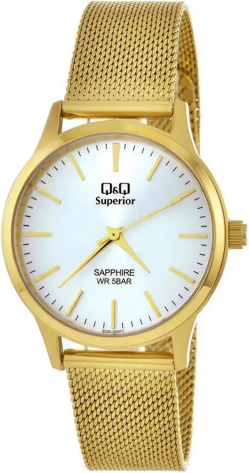 Женские наручные часы Q&Q Superior Women S03AJ006Y. Точный кварцевый механизм с аналоговой индикацией. Браслет из нержавеющей стали. Браслет из нержавеющей стали. Сапфировое стекло. Искусственно изготовленное стекло с высокой прочностью и устойчивостью к царапинам. Часы являются водонепроницаемыми до 5 Бар. Цвет циферблата: Желтое золото. Цвет корпуса: Золотистый. Толщина: 9 мм. Гарантия: 1 год.