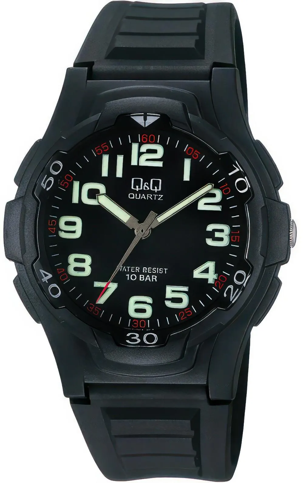 Точный кварцевый механизм.<br>• Центральная секундная стрелка.<br>• Точность хода не хуже -10 +15 сек./в месяц.<br>• Минеральное стекло устойчивое к возникновению царапин.<br>• Водозащита до 10 АТМ.<br>• Полимерный ремешок.<br>• Размеры корпуса 38 мм (по оси заводной головки) х 38 мм (по вертикали) х 10 мм (толщина).<br>• Вес 32 грамм.<br>• Срок службы батареи 3 года.