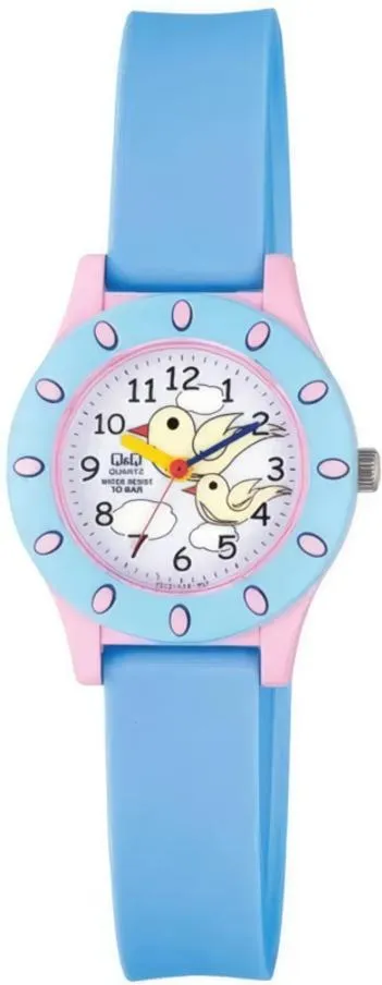<b>Яркие детские наручные часы</b><br><br>Точный кварцевый механизм. Центральная секундная стрелка. • Точность хода не хуже -10 +15 сек./в месяц. • Минеральное стекло устойчивое к возникновению царапин. • Корпус из полимерных материалов. • Водозащита до 10 АТМ. • Нержавеющая сталь с золотистым ремешок из полимерного материала. • Простая ремешковая застежка. • Диаметр 26 мм.