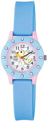 <b>Детские наручные часы Q&Q VQ13J010Y.</b> Точный кварцевый механизм с аналоговой индикацией. Полимерный корпус надежно защищает часы от механических повреждений. Полимерный ремешок. Натуральный полимерный материал является идеальным для изготовления ремешка благодаря своей чрезвычайной прочности и гибкости. Прочное, устойчивое к царапинам минеральное стекло защищает часы от повреждений.Часы являются водонепроницаемыми до 10 Бар. Цвет корпуса: Фиолетовый. Гарантия: 1 год.