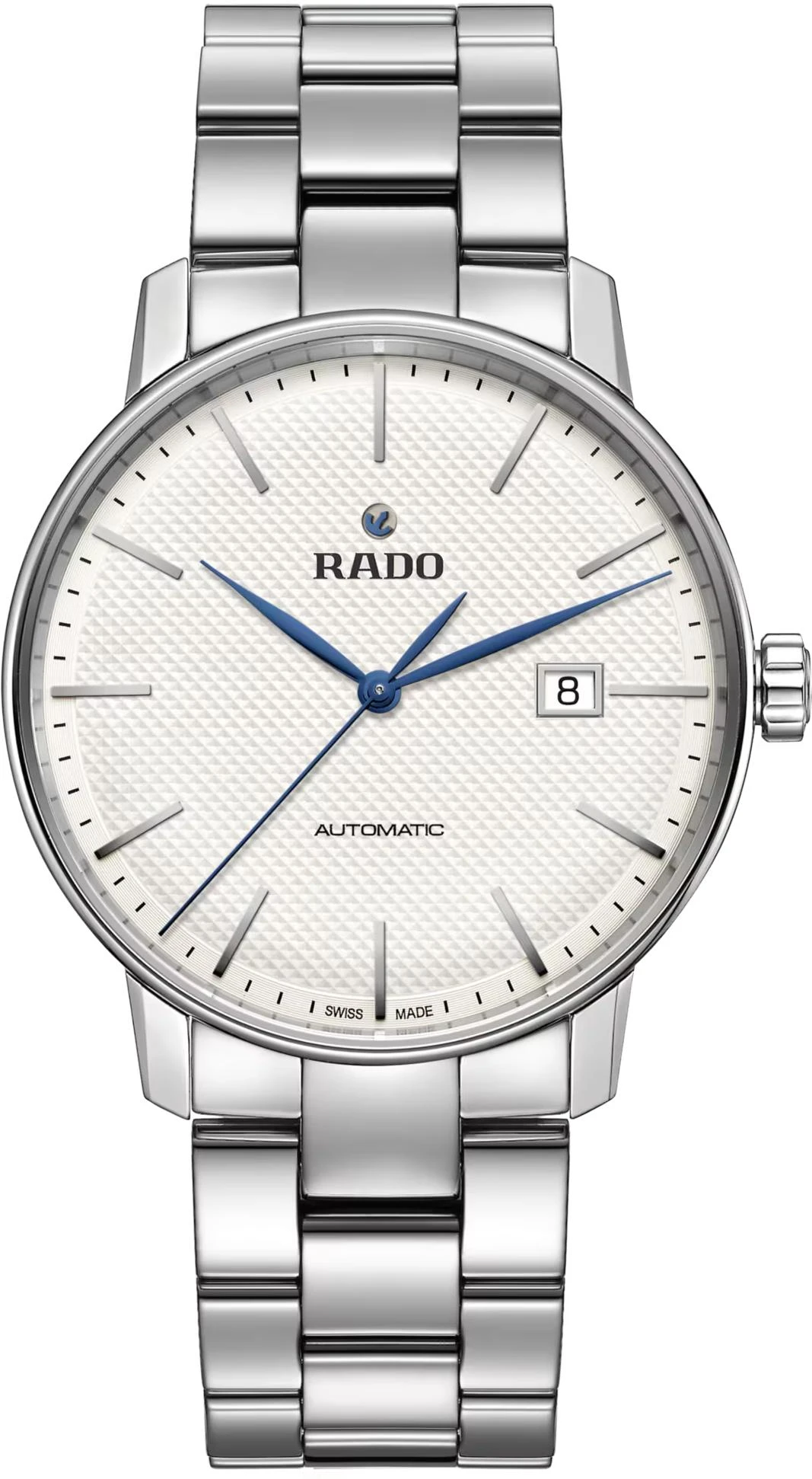 RADO Мужские швейцарские часы Coupole R22876013. Механические с автоподзаводом. Пружина механизма заводится автоматически благодаря естественным движениям владельца в процессе ежедневной носки часов. Браслет из нержавеющей стали обладает высокой прочностью и износостойкостью, обеспечивая долговечность даже при активной эксплуатации. Материал устойчив к коррозии и сохраняет свой внешний вид надолго. Корпус изготовлен из высококачественной нержавеющей стали 316L с высокими антикоррозийными свойствами. Сапфировое стекло. Искусственно изготовленное стекло с высокой прочностью и устойчивостью к царапинам. Часы являются водонепроницаемыми до 5 Бар. Цвет корпуса: Серебристый. Цвет циферблата: Белый. Толщина: 10 мм. Гарантия: 2 года.