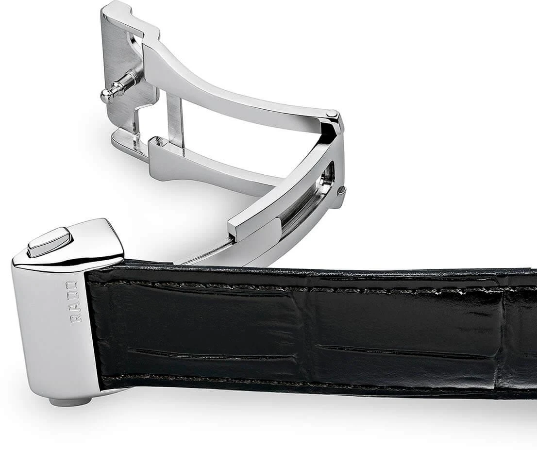 RADO Мужские швейцарские часы Coupole R22876015. Механические с автоподзаводом. Пружина механизма заводится автоматически благодаря естественным движениям владельца в процессе ежедневной носки часов. Ремешок изготовлен из кожи. Гибкость такого ремешка позволяет точно регулировать посадку часов на руке. Корпус изготовлен из высококачественной нержавеющей стали 316L с высокими антикоррозийными свойствами. Сапфировое стекло. Искусственно изготовленное стекло с высокой прочностью и устойчивостью к царапинам. Часы являются водонепроницаемыми до 5 Бар. Цвет корпуса: Серебристый. Цвет корпуса: Черный. Цвет циферблата: Белый. Толщина: 10.3 мм. Гарантия: 2 года.