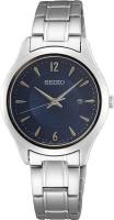 Женские наручные часы Seiko Discover More SUR425P1. Точный кварцевый механизм с аналоговой индикацией. Браслет из нержавеющей стали. Браслет из нержавеющей стали. Сапфировое стекло. Искусственно изготовленное стекло с высокой прочностью и устойчивостью к царапинам. На циферблате отображается текущее число месяца. Часы являются водонепроницаемыми до 10 Бар. Цвет циферблата: Серебристый. Цвет корпуса: Синий. Высота (с ушками): 16 мм. Толщина: 14 мм. Гарантия: 2 года.