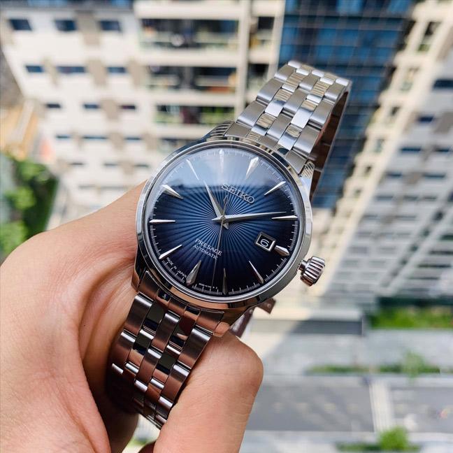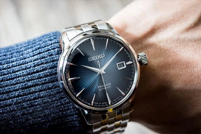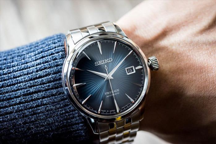 Мужские механические наручные часы с автоподзаводом и возможностью ручного завода Seiko SRPB41J1 Blue Gradation коллекции Presage Cocktail Time.