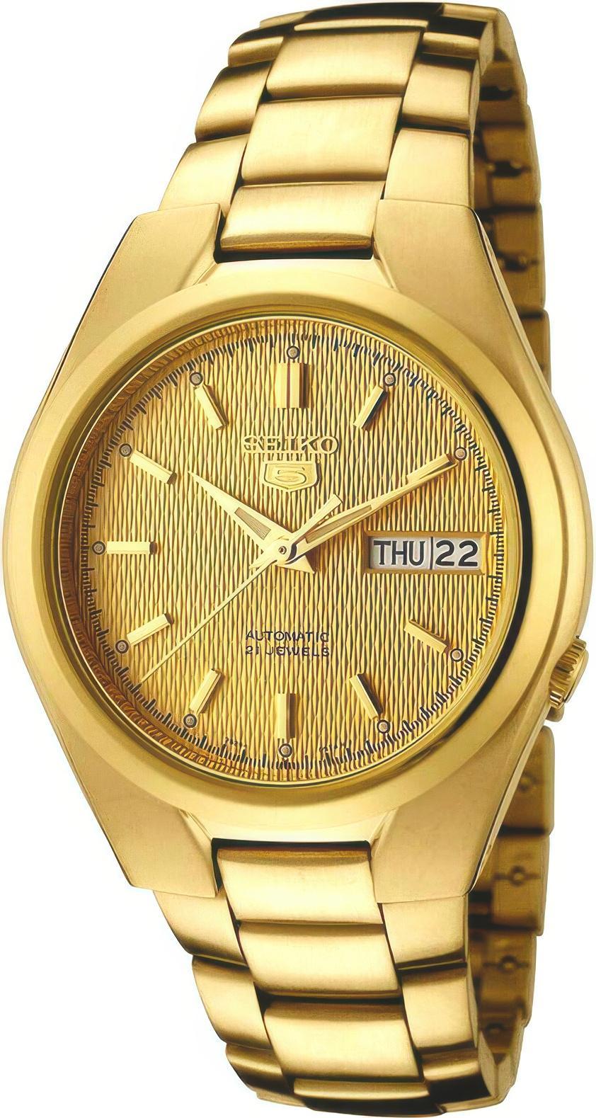 Унисекс наручные часы Seiko Seiko 5 SNK610K1. Механические с автоподзаводом. Пружина механизма заводится автоматически благодаря естественным движениям владельца в процессе ежедневной носки часов. Браслет из нержавеющей стали. После настройки автоматический календарь всегда отображает точную дату. Корпус изготовлен из высококачественной нержавеющей стали 316L с высокими антикоррозийными свойствами. Прочное, устойчивое к царапинам минеральное стекло защищает часы от повреждений. На циферблате отображается текущее число месяца и день недели. Часы являются водонепроницаемыми до 3 Бар. Цвет циферблата: Желтое золото. Цвет корпуса: Золотистый. На стрелки и отметки нанесен светонакопительный состав, благодаря этому считывать информацию с циферблата возможно и в темноте. Толщина: 11 мм. Гарантия: 2 года.