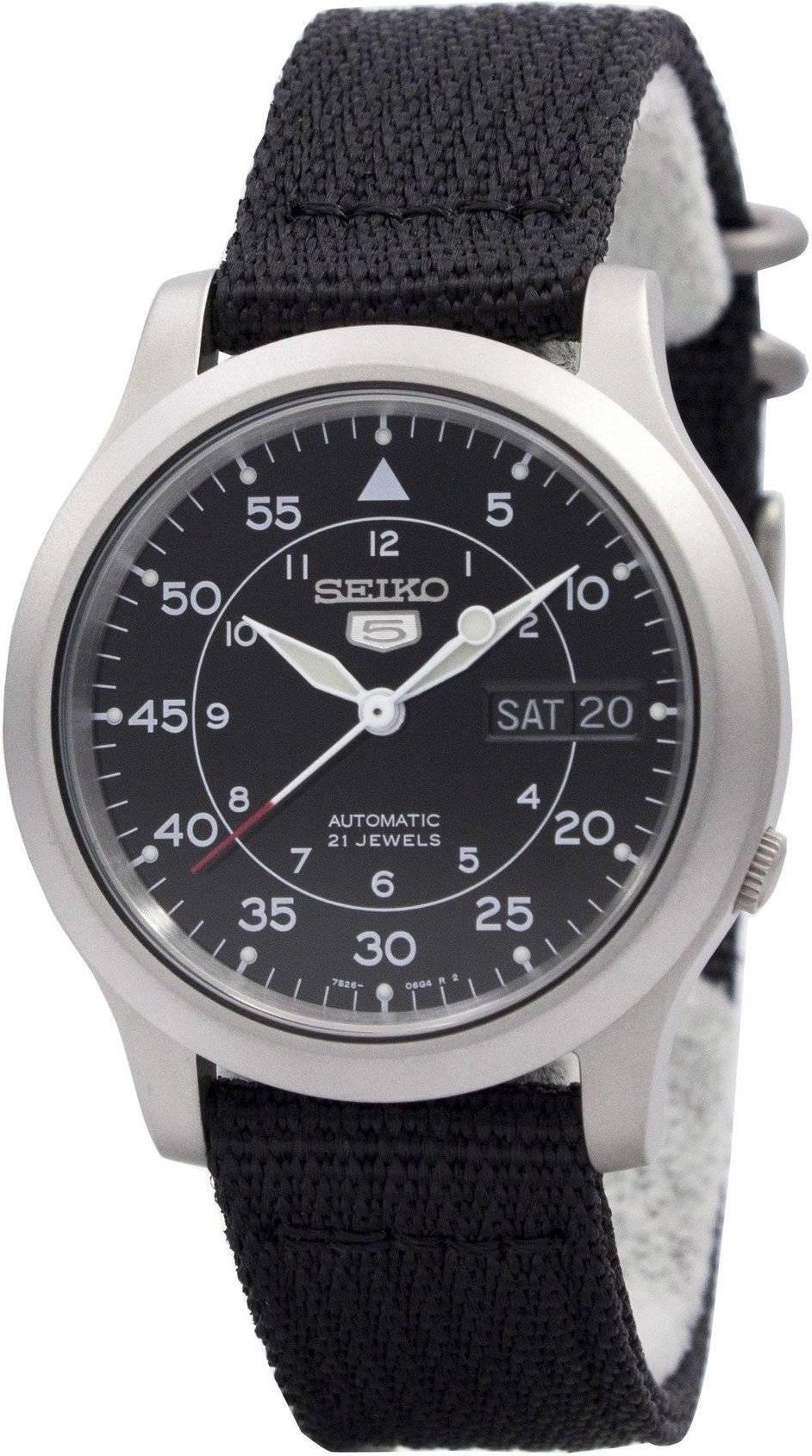 Мужские наручные часы Seiko Seiko 5 SNK809K2. Механические с ручным подзаводом. Корпус изготовлен из высококачественной нержавеющей стали 316L с высокими антикоррозийными свойствами. На стрелки и отметки нанесен светонакопительный состав, благодаря этому считывать информацию с циферблата возможно и в темноте. На циферблате отображается текущее число месяца и день недели. Текстильный ремешок. Прочное, устойчивое к царапинам минеральное стекло защищает часы от повреждений. Часы являются водонепроницаемыми до 3 Бар. Цвет корпуса: Серебристый. Цвет циферблата: Черный. Ширина (с заводной головкой): 37мм. Толщина: 11мм. Гарантия: 2 года.
