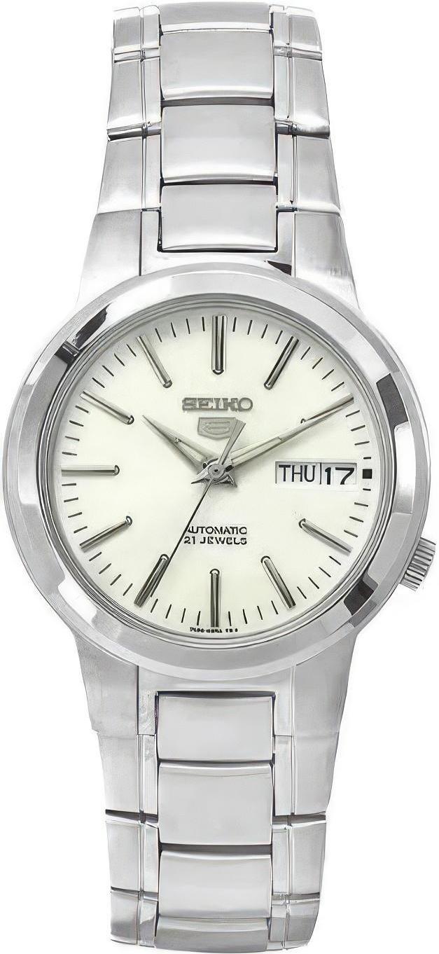 Мужские наручные часы Seiko Seiko 5 SNKA01K1. Механические с ручным подзаводом. Корпус изготовлен из высококачественной нержавеющей стали 316L с высокими антикоррозийными свойствами. На стрелки и отметки нанесен светонакопительный состав, благодаря этому считывать информацию с циферблата возможно и в темноте. На циферблате отображается текущее число месяца и день недели. Латунный браслет. Прочное, устойчивое к царапинам минеральное стекло защищает часы от повреждений. Часы являются водонепроницаемыми до 3 Бар. Цвет корпуса: Серебристый. Цвет циферблата: Белый. Гарантия: 2 года.