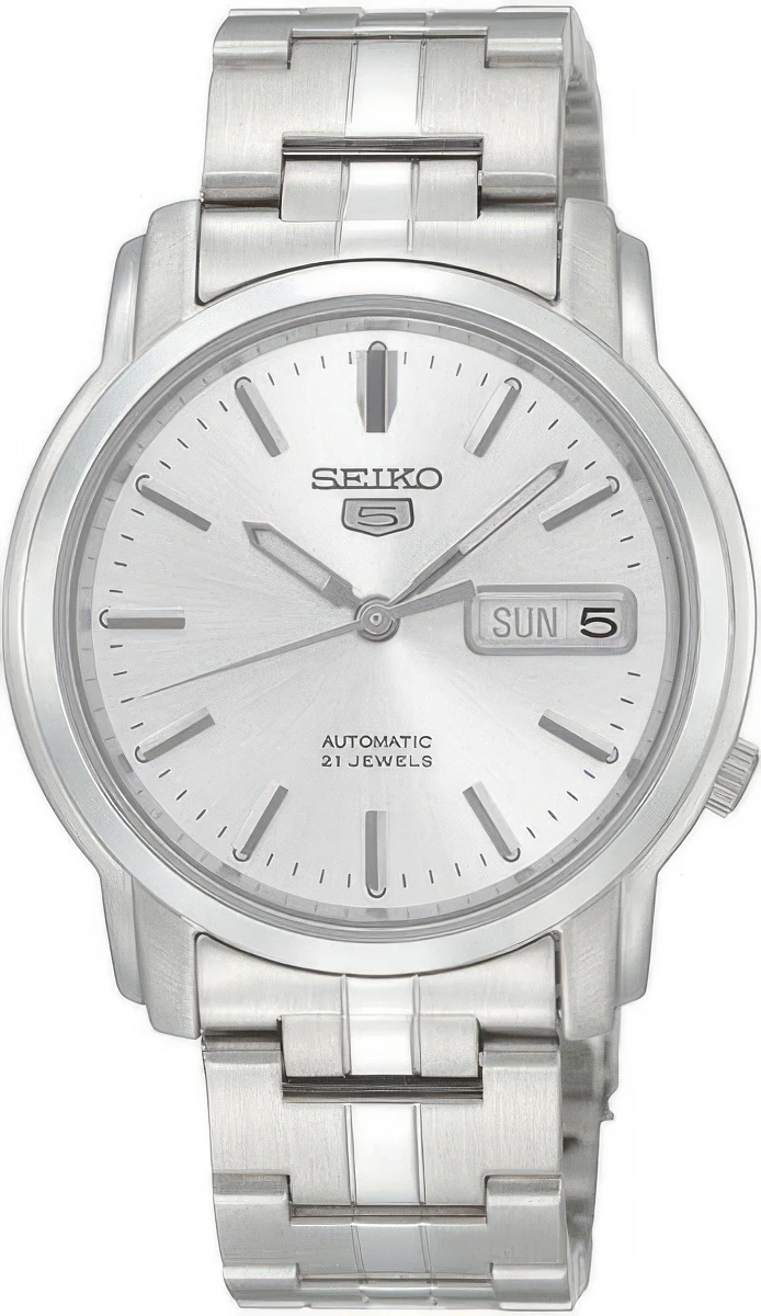 Мужские наручные часы Seiko Seiko 5 SNKK65K1. Механические с автоподзаводом. Пружина механизма заводится автоматически благодаря естественным движениям владельца в процессе ежедневной носки часов. На стрелки и отметки нанесен светонакопительный состав, благодаря этому считывать информацию с циферблата возможно и в темноте. Браслет из нержавеющей стали обладает высокой прочностью и износостойкостью, обеспечивая долговечность даже при активной эксплуатации. Материал устойчив к коррозии и сохраняет свой внешний вид надолго. Часы созданы с защитой от воздействия магнитных полей. Корпус изготовлен из высококачественной нержавеющей стали 316L с высокими антикоррозийными свойствами. Прочное, устойчивое к царапинам минеральное стекло защищает часы от повреждений. Часы являются водонепроницаемыми до 3 Бар. Цвет корпуса: Серебристый. Цвет циферблата: Серебристый. Высота (с ушками): 38 мм. Толщина: 10.5 мм. Гарантия: 2 года.