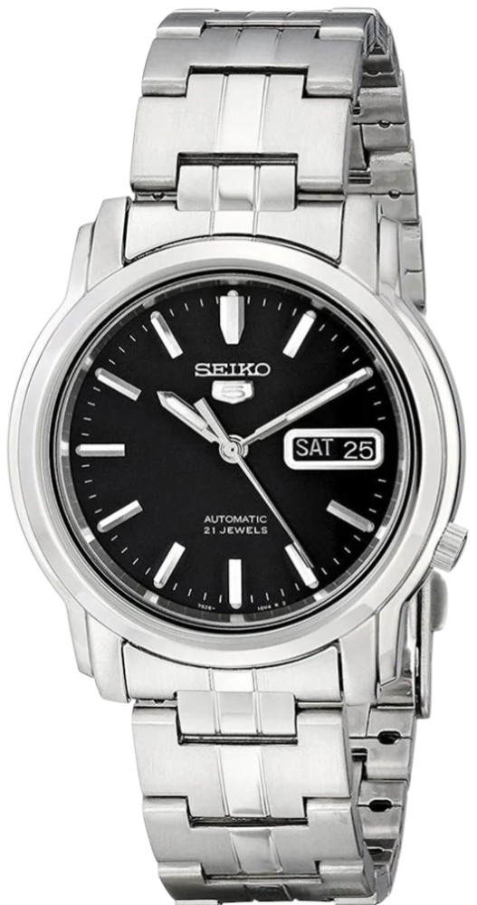 Мужские наручные часы Seiko Seiko 5 SNKK71K1. Механические с автоподзаводом. Пружина механизма заводится автоматически благодаря естественным движениям владельца в процессе ежедневной носки часов. На стрелки и отметки нанесен светонакопительный состав, благодаря этому считывать информацию с циферблата возможно и в темноте. Браслет из нержавеющей стали обладает высокой прочностью и износостойкостью, обеспечивая долговечность даже при активной эксплуатации. Материал устойчив к коррозии и сохраняет свой внешний вид надолго. Часы созданы с защитой от воздействия магнитных полей. Корпус изготовлен из высококачественной нержавеющей стали 316L с высокими антикоррозийными свойствами. Прочное, устойчивое к царапинам минеральное стекло защищает часы от повреждений. Часы являются водонепроницаемыми до 3 Бар. Цвет корпуса: Серебристый. Цвет циферблата: Черный. Высота (с ушками): 42 мм. Толщина: 12 мм. Гарантия: 2 года.