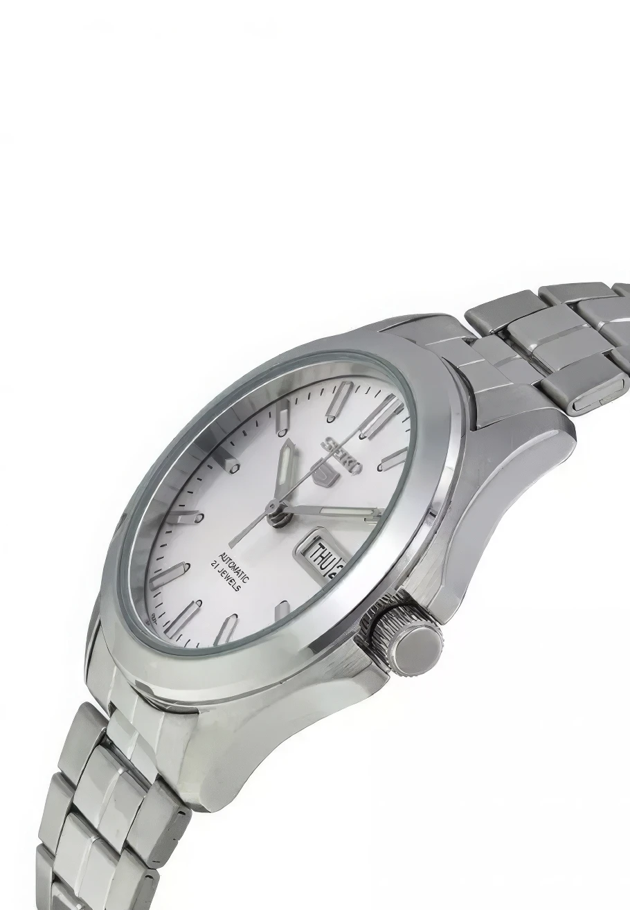 Мужские наручные часы Seiko Seiko 5 SNKK87K1. Механические с автоподзаводом. Пружина механизма заводится автоматически благодаря естественным движениям владельца в процессе ежедневной носки часов. Браслет из нержавеющей стали. Браслет из нержавеющей стали. Прочное, устойчивое к царапинам минеральное стекло защищает часы от повреждений. На циферблате отображается текущее число месяца и день недели. Часы являются водонепроницаемыми до 3 Бар. Цвет циферблата: Серебристый. Цвет корпуса: Белый. На стрелки и отметки нанесен светонакопительный состав, благодаря этому считывать информацию с циферблата возможно и в темноте. Толщина: 11 мм. Гарантия: 2 года.