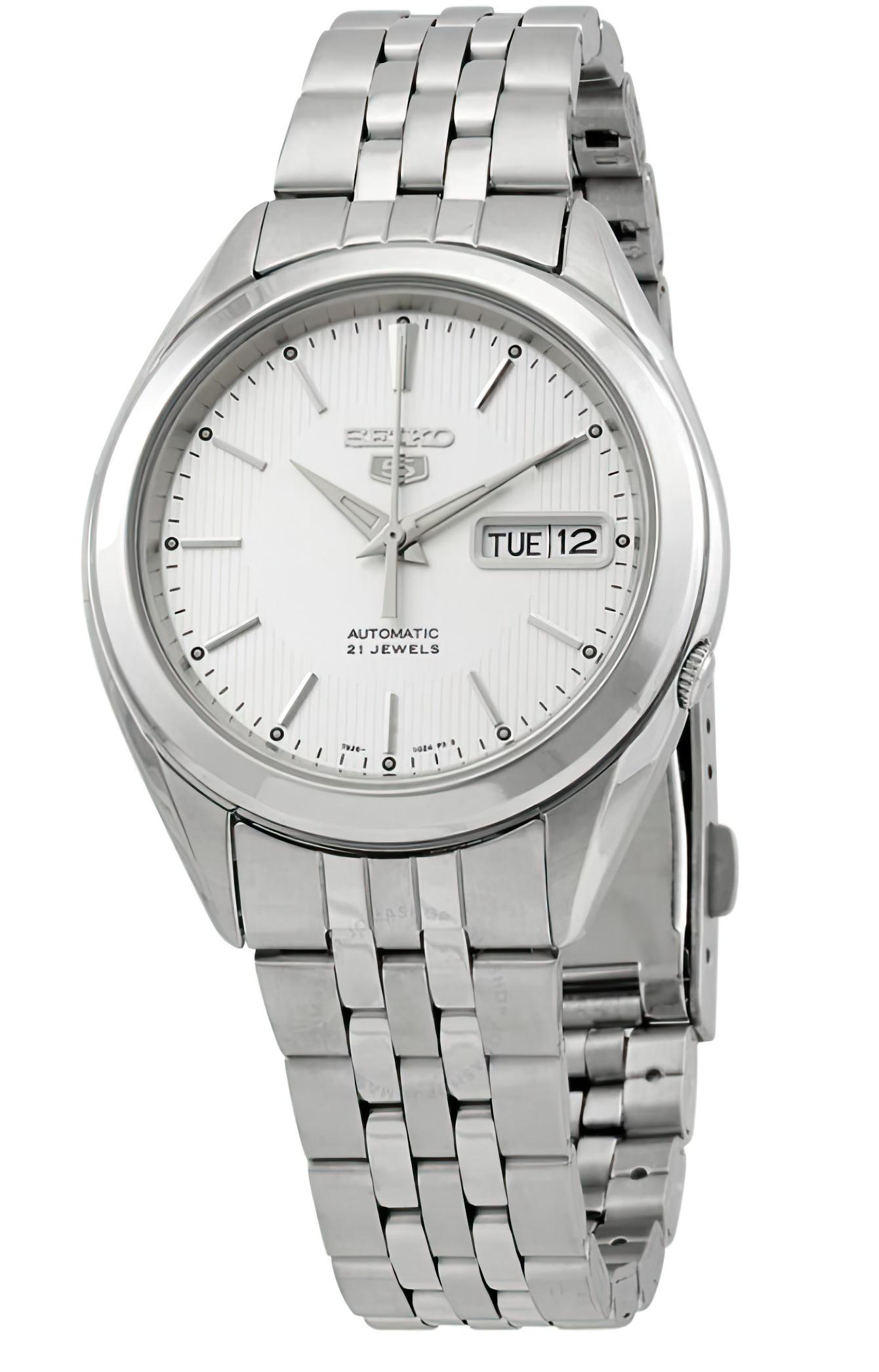 Мужские наручные часы Seiko Seiko 5 SNKL15K1. Механические с ручным подзаводом. Корпус изготовлен из высококачественной нержавеющей стали 316L с высокими антикоррозийными свойствами. На стрелки и отметки нанесен светонакопительный состав, благодаря этому считывать информацию с циферблата возможно и в темноте. На циферблате отображается текущее число месяца и день недели. Браслет из нержавеющей стали. Прочное, устойчивое к царапинам минеральное стекло защищает часы от повреждений. Часы являются водонепроницаемыми до 5 Бар. Цвет корпуса: Серебристый. Цвет циферблата: Серебристый. Ширина (с заводной головкой): 38мм. Толщина: 10мм. Гарантия: 2 года.