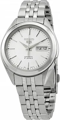 Мужские наручные часы Seiko Seiko 5 SNKL36J1. Механические с ручным подзаводом. Корпус изготовлен из высококачественной нержавеющей стали 316L с высокими антикоррозийными свойствами. На стрелки и отметки нанесен светонакопительный состав, благодаря этому считывать информацию с циферблата возможно и в темноте. На циферблате отображается текущее число месяца и день недели. Браслет из нержавеющей стали. Прочное, устойчивое к царапинам минеральное стекло защищает часы от повреждений. Часы являются водонепроницаемыми до 3 Бар. Цвет корпуса: Серебристый, желтое золото. Цвет циферблата: Белый. Ширина (с заводной головкой): 38мм. Толщина: 11мм. Гарантия: 2 года.