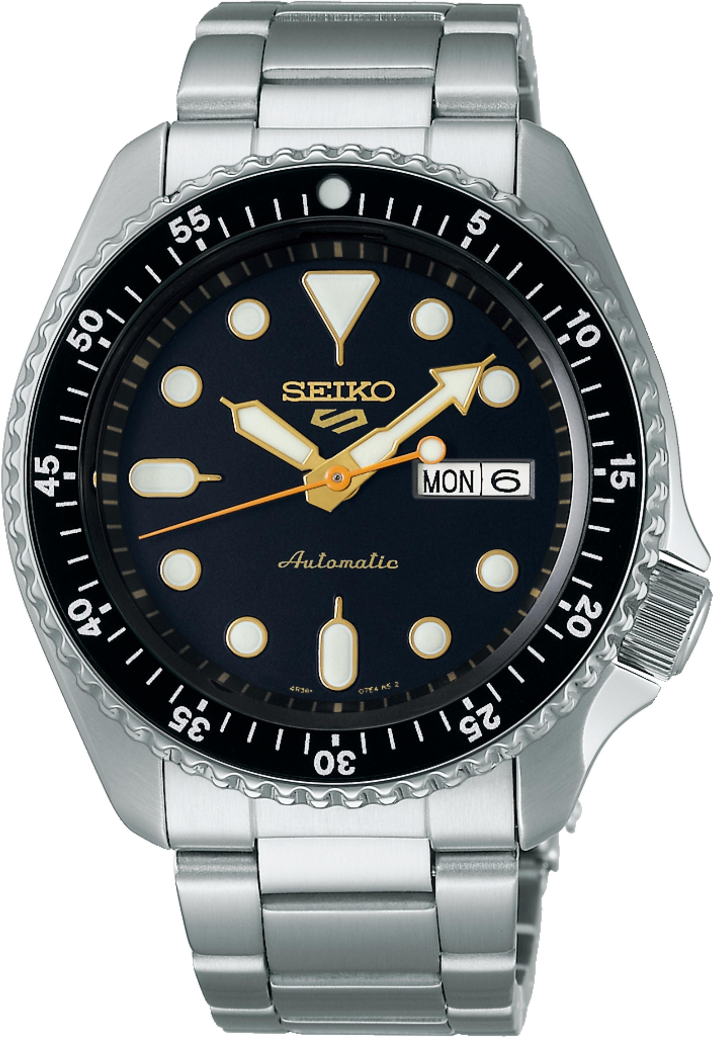 Мужские наручные часы Seiko Seiko 5 Sports SRPK05K1. Автоматические с ручным подзаводом. Пружина механизма заводится автоматически благодаря естественным движениям владельца в процессе ежедневной носки часов. Также есть возможность ручного завода. На стрелки и отметки нанесен светонакопительный состав, благодаря этому считывать информацию с циферблата возможно и в темноте. Браслет из нержавеющей стали обладает высокой прочностью и износостойкостью, обеспечивая долговечность даже при активной эксплуатации. Материал устойчив к коррозии и сохраняет свой внешний вид надолго. Часы созданы с защитой от воздействия магнитных полей. Корпус изготовлен из высококачественной нержавеющей стали 316L с высокими антикоррозийными свойствами. Прочное, устойчивое к царапинам минеральное стекло защищает часы от повреждений. Часы являются водонепроницаемыми до 10 Бар. Цвет корпуса: Серебристый. Цвет циферблата: Черный. Высота (с ушками): 46 мм. Толщина: 13.4 мм. Гарантия: 2 года.