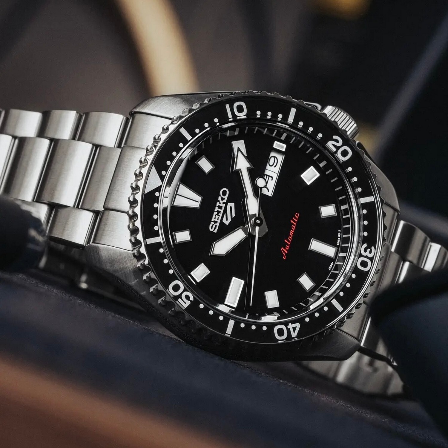 Механические часы с автоподзаводом и возможностью ручного завода. Калибр механизма 4R36 на 24 камнях. Частота 21 600 полуколебаний в час. Запас хода 41 час. Точность хода -25+35 секунд в сутки. Центральные часовая, минутная и секундная стрелки. Апертура даты и дня недели в позиции 3 часов. На стрелках и часовых метках покрытие LumiBrite. Черный циферблат. Круглый корпус выполнен из нержавеющей стали, однонаправленно вращающийся безель. Диаметр корпуса составляет 42,5 мм, толщина 13,9 мм. Заводная головка с защитой смещена в положение 4 часов. Стальной браслет шириной 22 мм, тройная раскладывающаяся застежка с фиксатором. Закаленное минеральное стекло Hardlex, устойчивое к мелким механическим повреждениям. Прозрачная задняя крышка. Водостойкость WR 100. Вес 187 г.