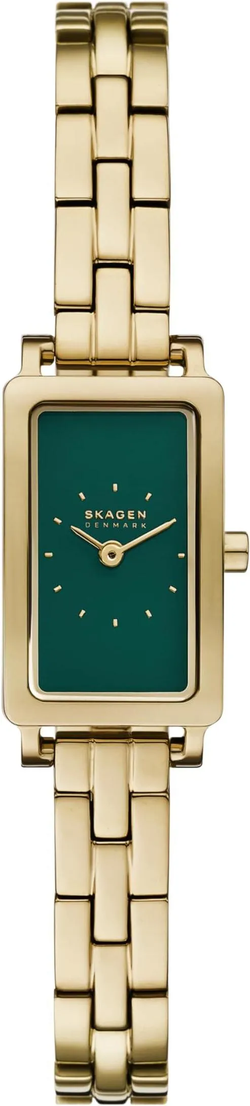Женские наручные часы Skagen Hagen SKW3146. Точный кварцевый механизм. Браслет из нержавеющей стали. Корпус изготовлен из высококачественной нержавеющей стали 316L с высокими антикоррозийными свойствами. Прочное, устойчивое к царапинам минеральное стекло защищает часы от повреждений. Часы являются водонепроницаемыми до 3 Бар. Цвет циферблата: Желтое золото. Цвет корпуса: Зеленый. Толщина: 6.3 мм. Гарантия: 2 года.