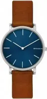 Оригинальные наручные часы с кожаным ремешком коричневого цвета подчеркнут мужественность и целеустремленность своего обладателя. В центре синего циферблата расположены часовая и минутная стрелки. Индикация выполнена продолговатыми отметками.