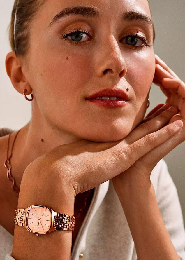 Женские кварцевые часы Mellem Lille в квадратном стальном корпусе сочетают лаконичный дизайн и практичность. Циферблат со штриховыми метками и люминесцентными стресками обеспечивает удобство считывания времени в темноте. Модель завершается стальным браслетом с раскладывающейся застежкой для комфортной носки.