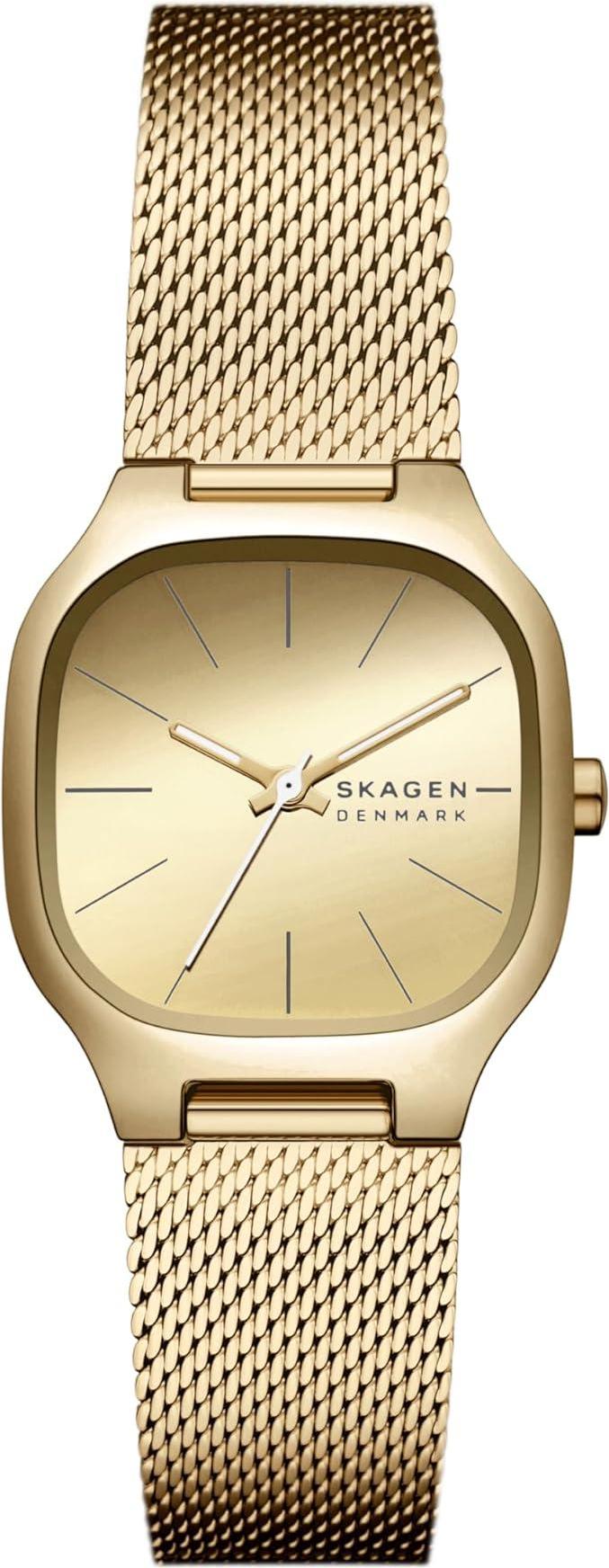 Женские наручные часы Skagen Mellem SKW3164. Точный кварцевый механизм с аналоговой индикацией. В отличие от механических часов, не требуют завода и работают от батареи, показывая отклонение всего несколько секунд в месяц. На стрелки и отметки нанесен светонакопительный состав, благодаря этому считывать информацию с циферблата возможно и в темноте. Браслет из нержавеющей стали обладает высокой прочностью и износостойкостью, обеспечивая долговечность даже при активной эксплуатации. Материал устойчив к коррозии и сохраняет свой внешний вид надолго. Корпус изготовлен из высококачественной нержавеющей стали 316L с высокими антикоррозийными свойствами. Прочное, устойчивое к царапинам минеральное стекло защищает часы от повреждений. Часы являются водонепроницаемыми до 3 Бар. Цвет корпуса: Желтое золото. Цвет циферблата: Золотистый. Толщина: 8 мм. Гарантия: 2 года.