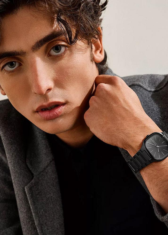 Мужские наручные часы Skagen Mellem SKW6935. Точный кварцевый механизм с аналоговой индикацией. В отличие от механических часов, не требуют завода и работают от батареи, показывая отклонение всего несколько секунд в месяц. На стрелки и отметки нанесен светонакопительный состав, благодаря этому считывать информацию с циферблата возможно и в темноте. Браслет из нержавеющей стали обладает высокой прочностью и износостойкостью, обеспечивая долговечность даже при активной эксплуатации. Материал устойчив к коррозии и сохраняет свой внешний вид надолго. Корпус изготовлен из высококачественной нержавеющей стали 316L с высокими антикоррозийными свойствами. Прочное, устойчивое к царапинам минеральное стекло защищает часы от повреждений. Часы являются водонепроницаемыми до 3 Бар. Цвет корпуса: Черный. Цвет циферблата: Черный. Толщина: 8 мм. Гарантия: 2 года.