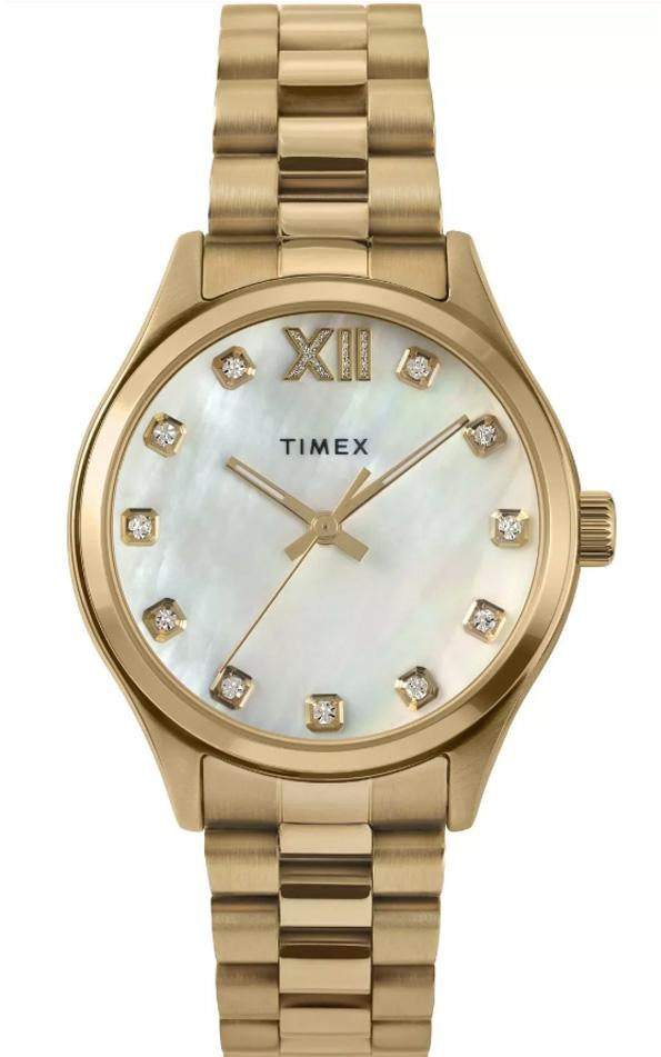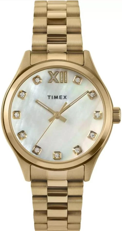 Timex оснащены великолепно изготовленным ремешком из высококачественной нержавеющей стали, обеспечивающим долговечность и роскошное ощущение на вашей коже. С размером корпуса 34 мм эти часы представляют собой идеальный баланс между смелостью и утонченностью, что делает их идеальным аксессуаром для любого запястья. Яркий золотой цвет ремешка дополняет не менее сияющий золотой корпус, создавая гармоничный дизайн, излучающий уверенность и очарование. В основе часов Timex лежит точный кварцевый механизм, известный своей надежностью и точностью.